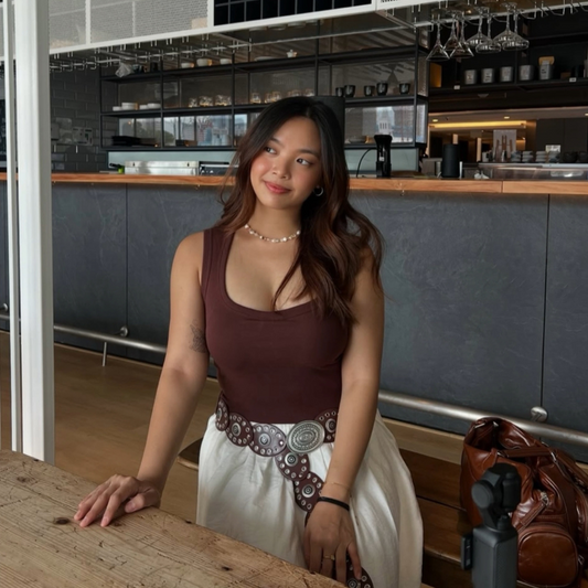 Square Neck Tank Top - Brown
