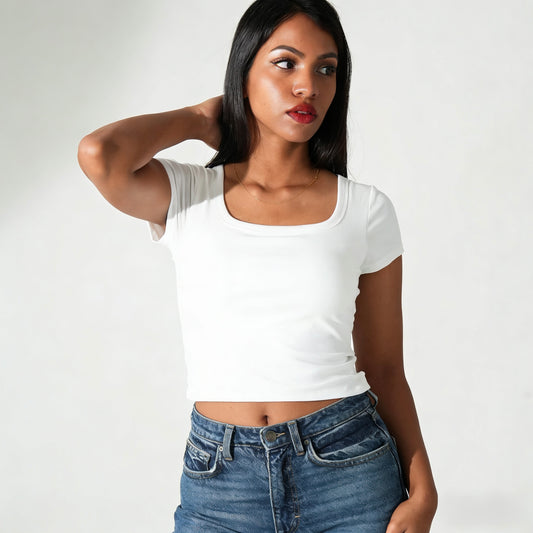 Square Neck Bra Top - White